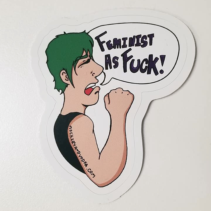 Do you consider yourself a feminist? Do you also have a flair for the obscenities of language? Look no further than this Feminist As F*ck Sticker, featuring the main protagonist of the comic, Mockery and Vodka. This Sticker shouts into the void (and whoever may be listening), that you are indeed Feminist as f*ck!